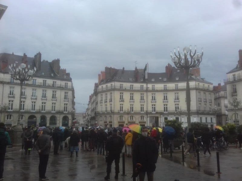 Après avoir initié un mouvement national et connu diverses péripéties (manifestation déplacée, messe interdite) les catholiques nantais ont pu manifester de nouveau ce dimanche, place Graslin. Ils ont été, malgré une météo matinale dantesque, près de 500 à braver les éléments. Une cinquantaine de manifestations ont eu lieu partout en France. Le lendemain, après une réunion avec des évêques bien moins remontés que leurs fidèles, le gouvernement a accepté de rétablir les messes, mais pas avant le 1er décembre, d’après le communiqué de la CEF.