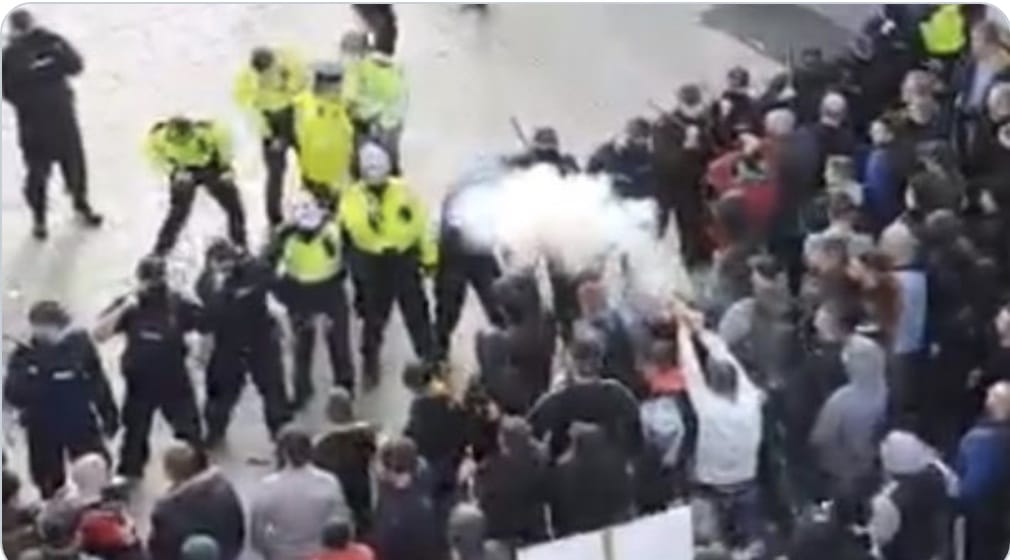 Une manifestation violemment réprimée par la police irlandaise – accusée d’être plus souple lorsqu’il s’agissait il y a quelques semaines des manifestants pro Black Lives Matter – à partir du moment où un jeune homme dans la foule a tiré des pétards (feu d’artifice) directement sur la police (feu d’artifice confectionné par un manifestant visiblement âgé autour de 10-12 ans, au milieu de la foule). Une vingtaine d’arrestations ont eu lieu.