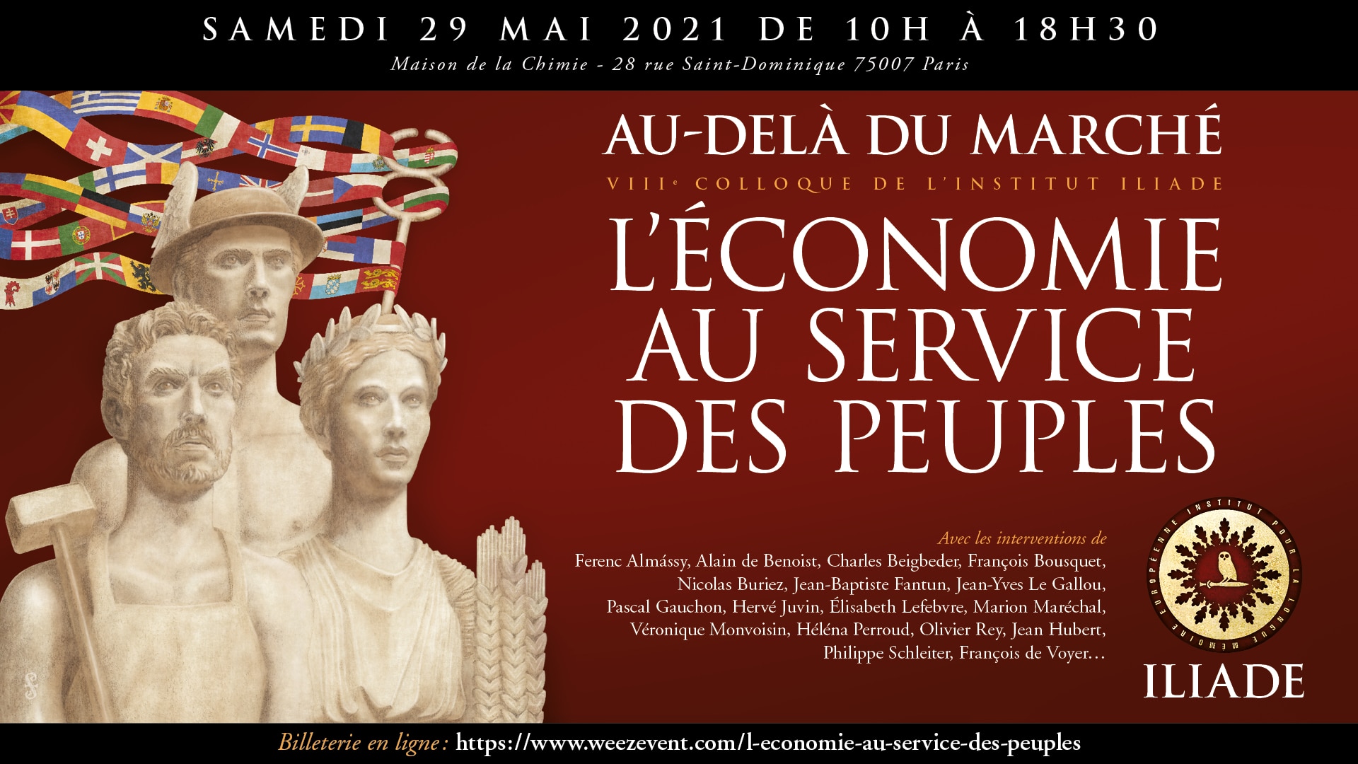 Le colloque de l’Institut Iliade qui devait se tenir le 10 avril à la maison de la chimie, à Paris, est reporté au 29 mai 2021, même lieu.