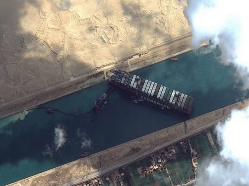 L’incident paralyse complètement le canal de Suez – 31 navires attendent de s’y engager à Port-Saïd, 38 autres à Suez et une centaine d’autres sont bloqués soit en Méditerranée, soit dans l’Océan Indien.