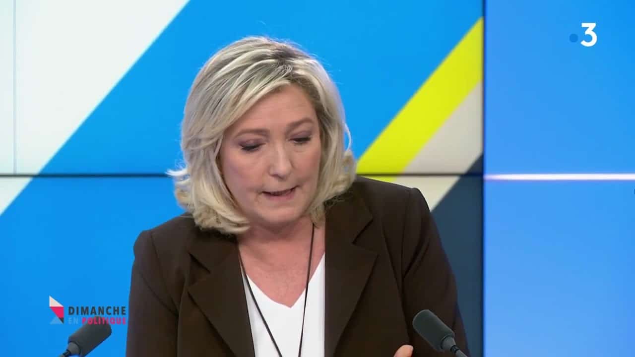 La présidente du Rassemblement national était invitée de l’émission Dimanche en politique sur France 3 émission dans laquelle elle a par ailleurs condamné, un peu comm Fini se reniant totalement en Italie à l’époque, l’action d’Agit prop de l’Action française à la région Occitanie, pour dénoncer l’islamo-gauchisme via une banderole.