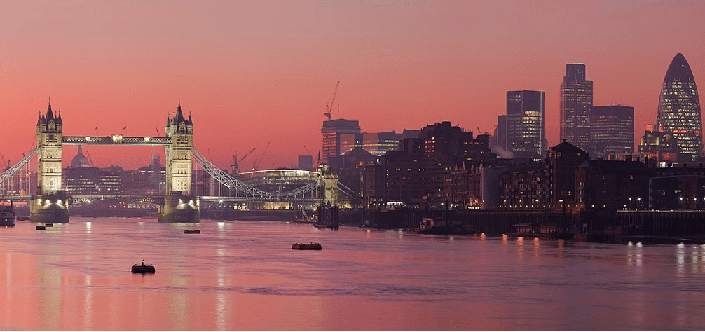 Crédit photo : [cc] Londres au crépuscule, photo David Iliff, licence CC BY-SA 3.0, via Wikimedia Commons, https://commons.wikimedia.org/wiki/File:London_Thames_Sunset_panorama_-_Feb_2008.jpg