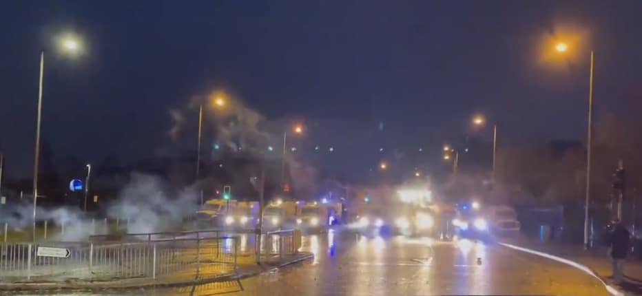 BREAKING: Water cannons being deployed by the PSNI tonight on Springfield Road in Belfast pic.twitter.com/mEwLbAi75g