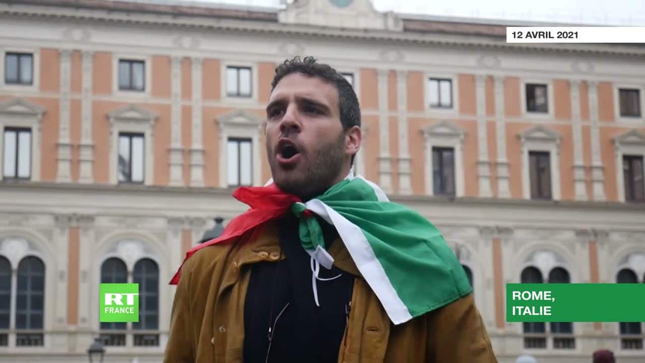 Des heurts ont éclaté, le 12 avril, à Rome lors d’une manifestation contre le confinement. Les manifestants, parmi lesquels de nombreux restaurateurs, ont exigé la réouverture des restaurants, théâtres, bars et salles de sport fermés en raison de la pandémie de Covid-19. Le rassemblement n’étant pas autorisé, les forces de l’ordre ont tenté d’empêcher les manifestants d’avancer dans la ville.