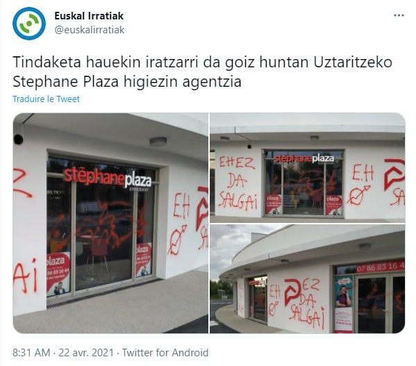 Tindaketa hauekin iratzarri da goiz huntan Uztaritzeko Stephane Plaza higiezin agentzia pic.twitter.com/kCmCeT85i2