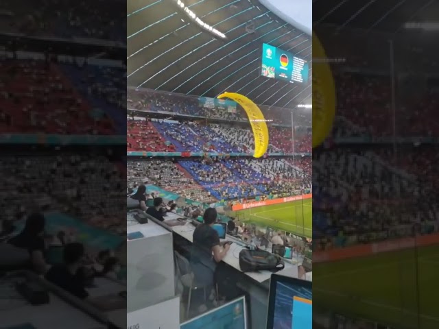 Un militant de Greenpeace est en effet apparu à bord d’un ULM pendant la coupure pub entre les hymnes et le coup d’envoi du match. Rapidement interpellé après s’être posé sur la pelouse de l’Allianz Arena.