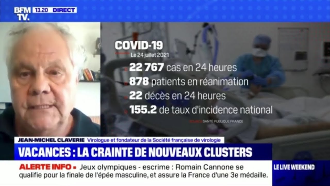 Sur BFMTV, chaîne particulièrement zélée et inféodée à la politique gouvernementale depuis le début de la pandémie de Covid-19, ce sont des mots très forts qui ont été prononcés par Jean-Michel Claverie, virologue et fondateur de la Société Française de Virologie dimanche 25 juillet.