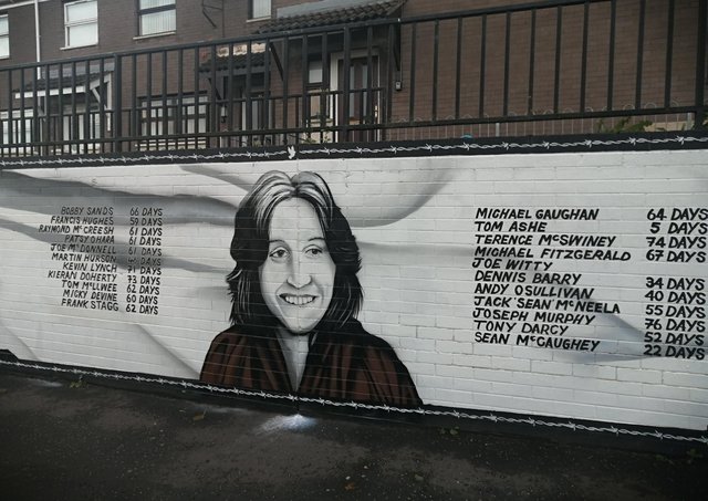 Si elle commémore principalement les dix grévistes de la faim de l’IRA et de l’INLA d’il y a 40 ans – Bobby Sands, Francie Hughes, Raymond McCreesh, Patsy O’Hara, Joe McDonnell, Martin Hurson, Kevin Lynch, Kieran Doherty, Thomas McElwee et Mickey Devine – la fresque reconnaît également le rôle joué par les femmes détenues à Armagh Gaol en 1980 et 1981.