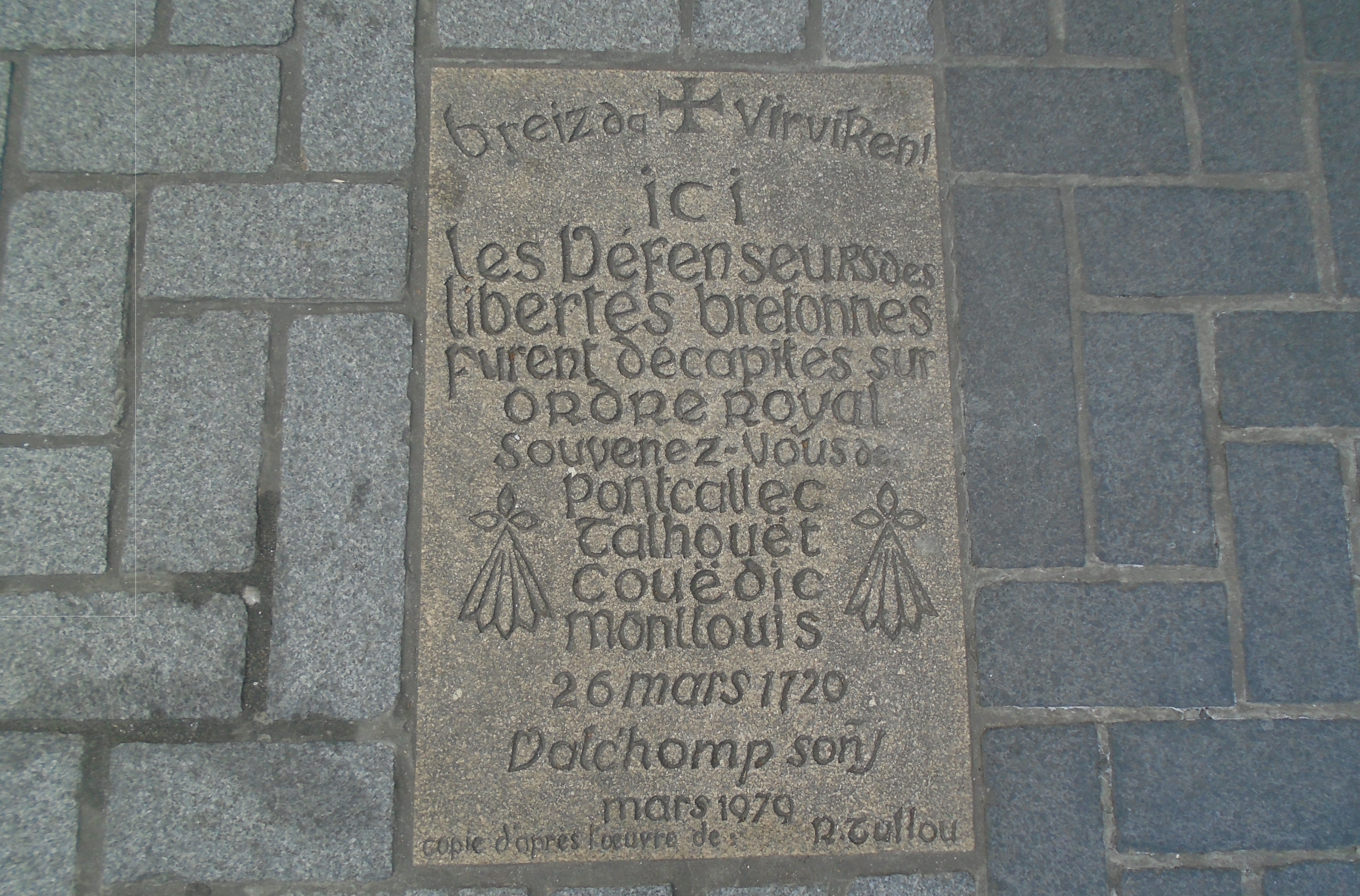 Illustration : plaque commémorative de l’exécution de Pontcallec et de ses compagnons à Nantes, photo BI, droits réservés