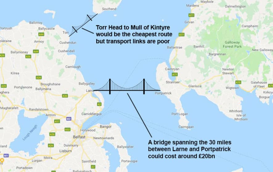 Il a été décrié comme étant l’un des projets farfelus de Boris Johnson : un pont reliant l’Écosse à l’Irlande du Nord, et donc la Grande-Bretagne à l’île d’Irlande. « Le tunnel le plus stupide du monde (…) rien de plus qu’un projet de vanité » a raillé Dominique Cummings, le ministre des transports du SNP, le Scottish national party.