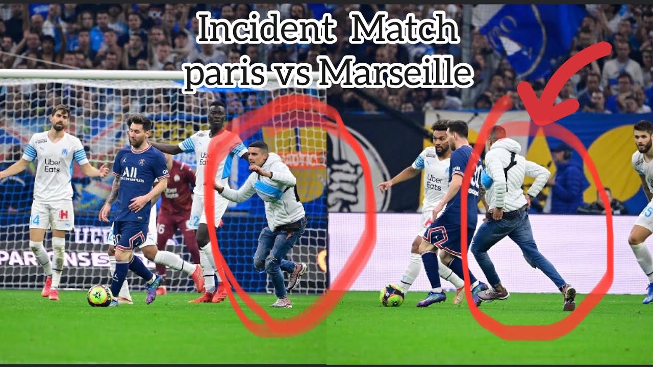 A la 72ème minute, un individu s’est introduit sur le terrain pour approcher Lionel Messi, joueur du PSG. Intercepté par la sécurité, puis arrêté par la police, il s’est dit « mineurs isolé étranger » (les photos permettent de largement douter de sa minorité). Impossible de savoir comment il a pu rentrer dans le stade, même si il est de notoriété publique que les tribunes à Marseille sont des gruyères…