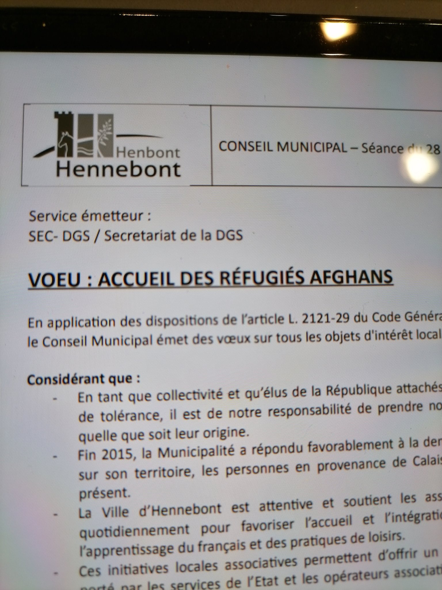 Vote en Conseil municipal d'un vœu en faveur de l'accueil des réfugiés afghans. Parce que le conseil municipal peut émettre des vœux sur TOUS les objets d'intérêt local. @UDB__ pic.twitter.com/ivuATaemZ9