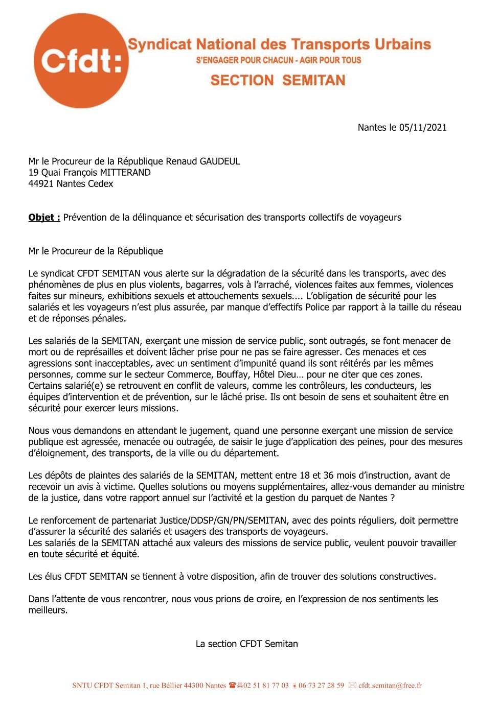 Marteze eo poent lavarout ar wirionez, tud eus ar CFDT. Gant piv e vezit taget en transportoù e Naoned kamaladed sindikalour ? Gant ar memes seurt tud evel just, met ken gaochist eo ar CFDT ken n’hall ker lavarout sklaer an traoù, siwazh.