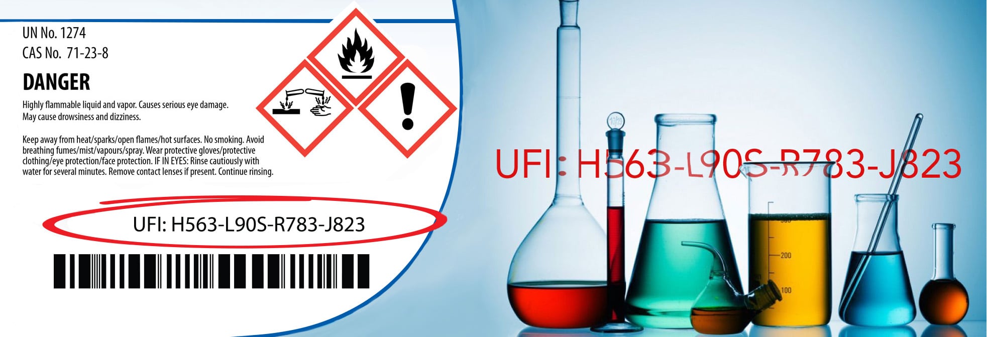 C’est la raison d’être du code UFI, code d’identification, désormais obligatoire sur les étiquettes en Europe, pour permettre une meilleure prise en charge par les centres antipoison. Ce dernier doit être inscrit directement sur le contenant du produit, ou apposé sur celui-ci à l’aide d’un autocollant et cela de manière visible.