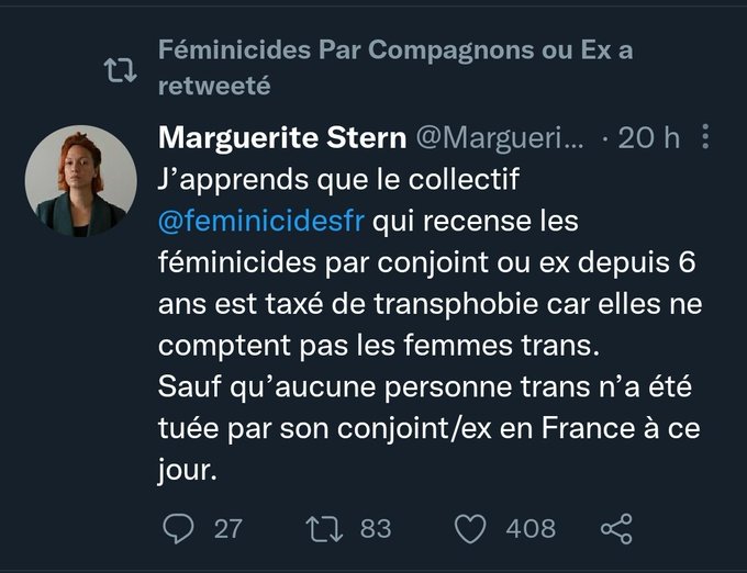 Une réponse à “#NousToutes suspend son décompte des féminicides car… les trans n’y figurent pas !”