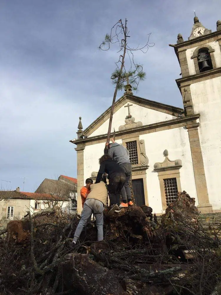 Tout commence le premier dimanche du mois de décembre et se poursuit tous les dimanches jusqu’à la veillée de Noël. Les garçons en âge de faire le service militaire, qui d’ailleurs n’existe plus, se rassemblent le matin devant l’un des bars du village pour boire un café et essayer de se réchauffer! C’est important car il faut discuter et arriver à un accord : où aller chercher le bois mort ? Comme il y a bien moins de garçons qu’autrefois, les jeunes des années précédentes et suivantes vont aider, car les plus vieux ont eux aussi eu l’aide des plus jeunes. Cette entraide soude les liens entre générations. Des agriculteurs qui vont prendre leur café matinal proposent de mettre au service des jeunes leurs tracteurs pour le transport du bois ramassé qui sera apporté en bas des marches de l’église. Ils indiquent également aux « jeunes de l’année » (en portugais, « os do ano», ceux qui ont donc 19 ans) qu’ils peuvent aller ramasser branchages, souches et autres restes dans leurs champs. Les deux premiers dimanche on ramasse le plus souvent du petit-bois, c’est-à-dire des arbustes, des rameaux, des branches qui sont accumulés par les agriculteurs ou qui se trouvent par terre dans les bois. L’avant-dernier dimanche, les jeunes vont chercher des troncs plus gros. Ensuite viennent les choses sérieuses…