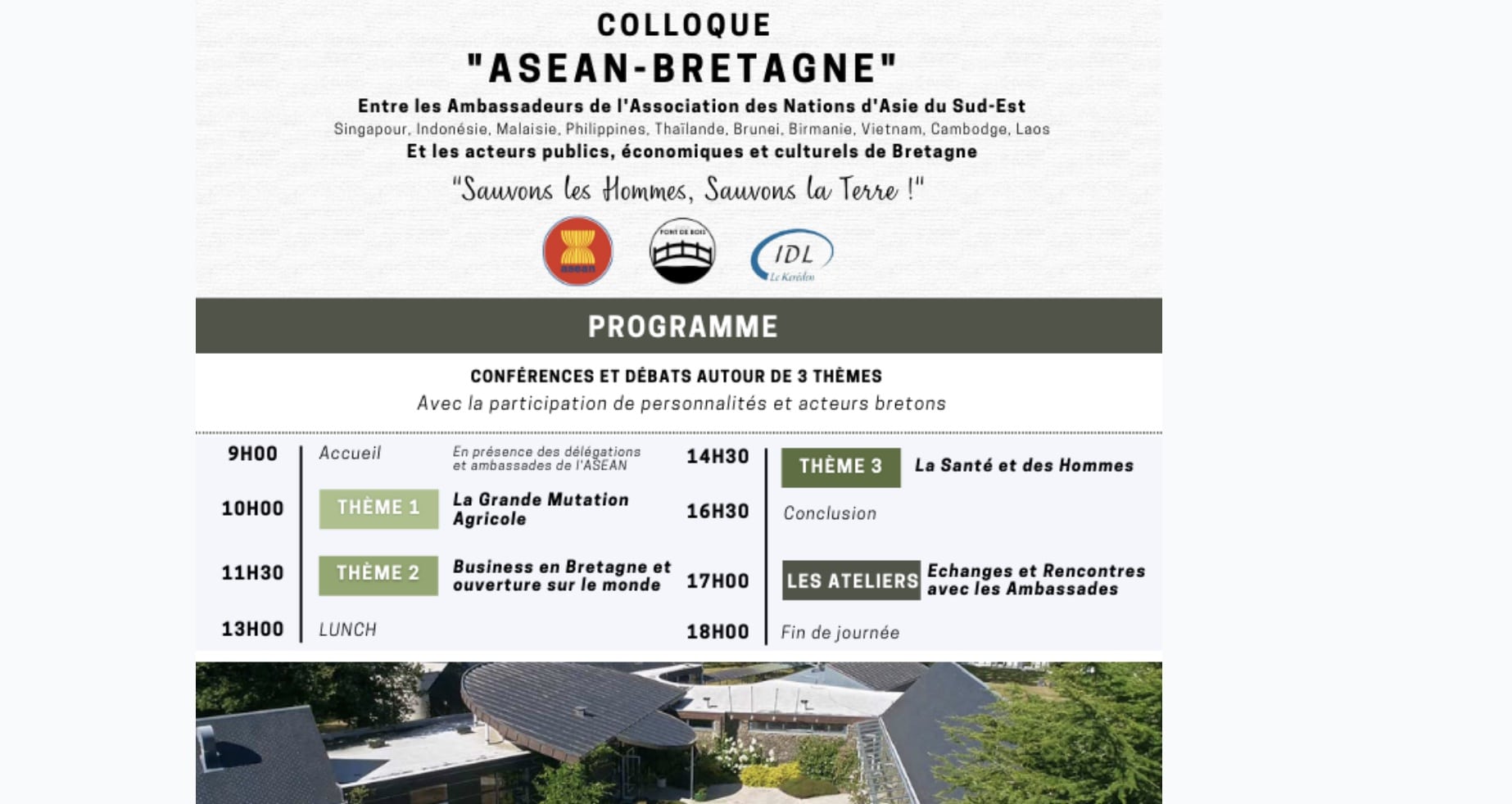 Les Ambassadeurs de l’Association des Nations d’Asie du Sud-Est (ASEAN), seront présents avec leurs conseillers au Keréden à Locarn (anciennement Institut de Locarn) sur la journée du vendredi 8 juillet qui sera consacrée aux témoignages et échanges pour valoriser les liens économiques et culturels avec la Bretagne.