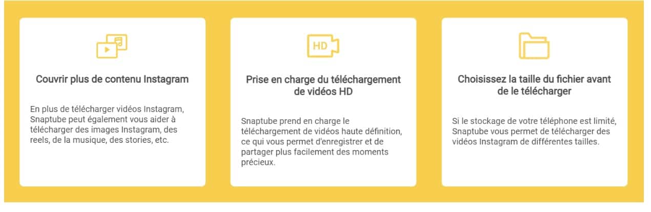 En outre Snaptube, il y a de nombreuses autres solutions dédiées au téléchargement de vidéos Instagram, toutefois, la plupart présente des limites d’enregistrement, ne sont pas assez développées pour télécharger une qualité HD ou au meilleurs des cas, restent spécifiques à une seule plateforme.