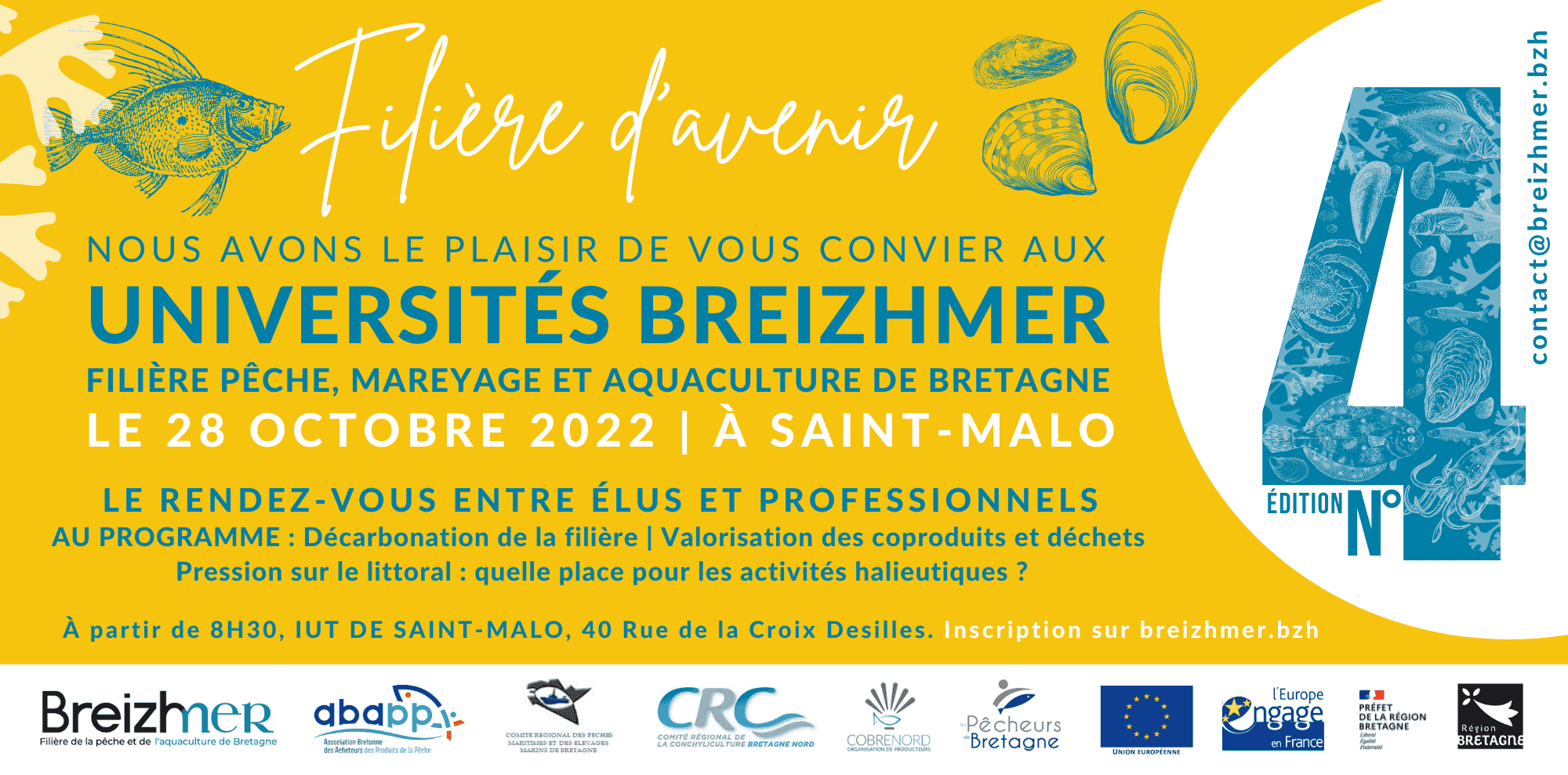 Les Universités Breizhmer se dérouleront à l’IUT de Saint-Malo le 28 octobre : il s’agit d’une journée d’échanges et de débats pour construire la filière pêche et aquaculture