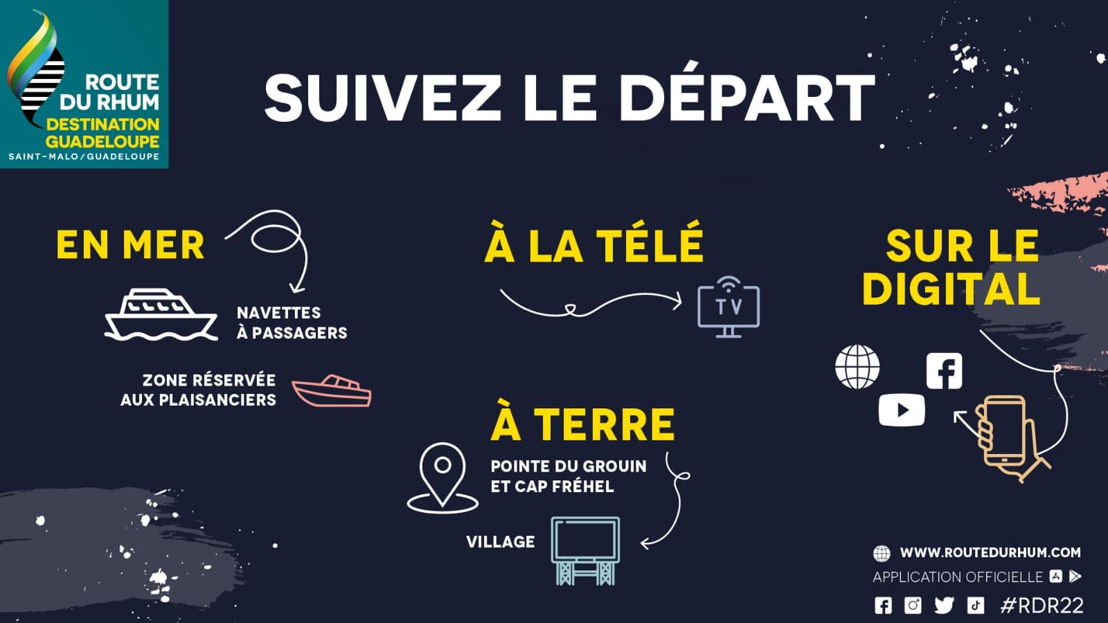 - Réseaux sociaux : départ à suivre sur les réseaux sociaux officiels de la 12e Route du Rhum – Destination Guadeloupe :