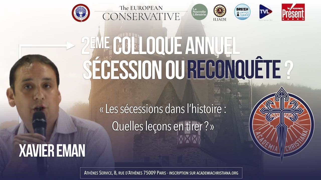 Allocution de Xavier Eman : Les sécessions dans l’histoire – quelles leçons en tirer ? lors du colloque Sécession ou reconquête le 5 novembre 2022 à Paris. « Reconquête ou sécession » Pourquoi ce débat ? Il nous a semblé qu’il s’agissait là d’une question primordiale pour toute personne souhaitant s’engager. A quoi sert de parler politique si l’on n’agit pas ? Les commentaires portant sur le déclin civilisationnel sont devenus un exercice de style presque banal. Il faut être aveugle, ou partisan du néant, pour ne pas voir ce que les faits nous révèlent : nous arrivons à la fin d’une période.