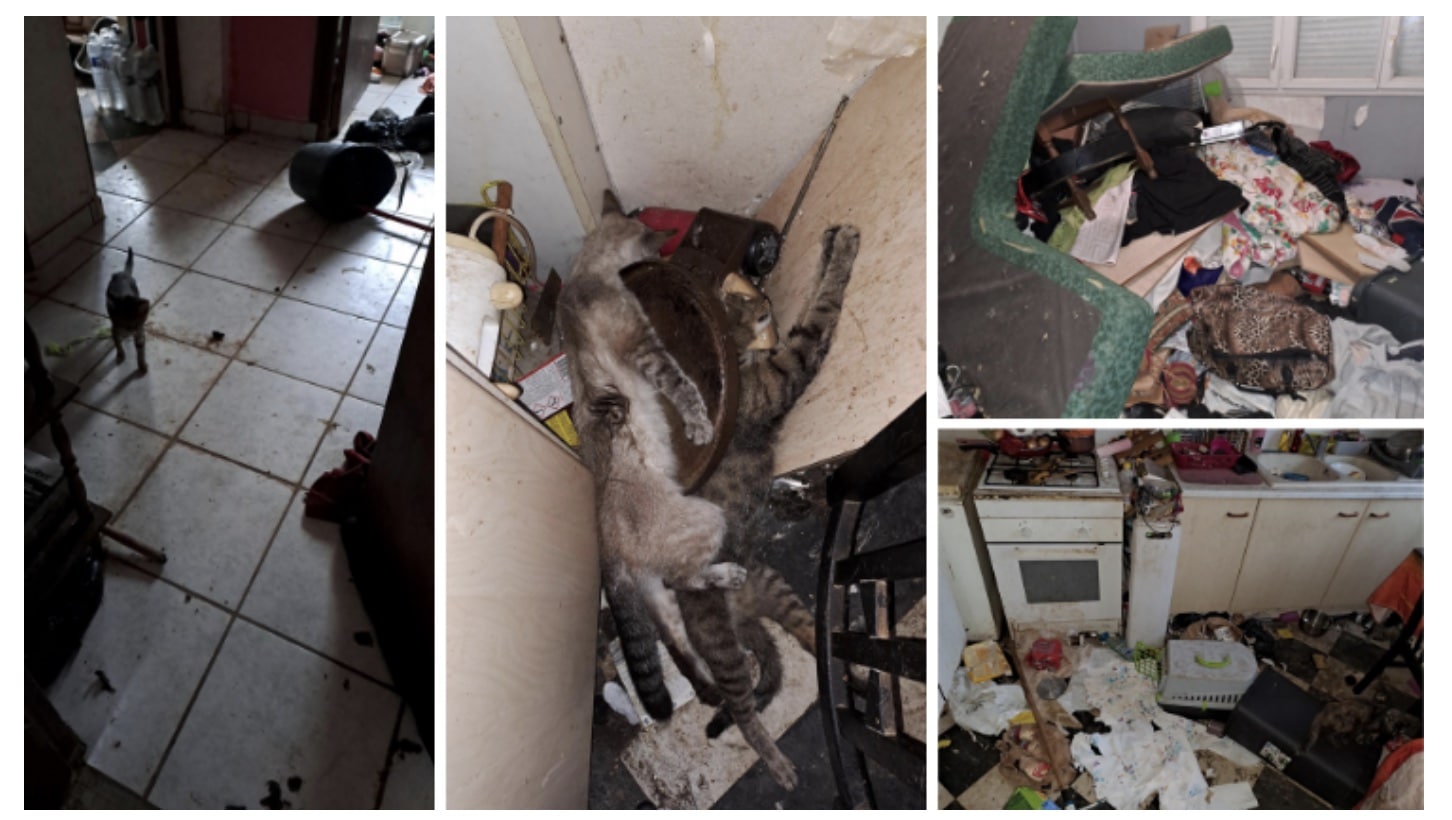 Le 23 septembre 2022, à 7h30, une enquêtrice bénévole de l’association s’est rendue sur les lieux, accompagnée des pompiers, de la police et d’un élu de la ville. Une odeur pestilentielle émanait de l’appartement. Un premier chat a été retrouvé mort, coincé dans une fenêtre. Personne n’était présent sur place, selon le voisinage, la locataire avait quitté les lieux 10 jours auparavant. L’appartement était insalubre et complètement en désordre. Le sol était jonché d’excréments et d’urine. À l’intérieur, une quinzaine de chats maigres, affamés et assoiffés ont été retrouvés, dont deux cadavres. Les chiens n’étaient pas présents sur les lieux. Tous les chats ont été pris en charge par la SACPA le jour-même.