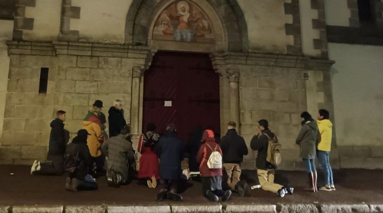 Une vingtaine de fidèles catholiques ont prié devant l’Eglise Sainte Anne d’Arvor de Lorient, dégradée il y a quelques jours, dans l’indifférence des élus locaux qui n’hésitent pas, en d’autres circonstances, à communiquer fortement sur les réseaux sociaux. A l’issue de ces prières, Louis de Blois, du mouvement Civitas, a pris la parole, et a lu un texte qu’il nous a transmis ci-dessous.
