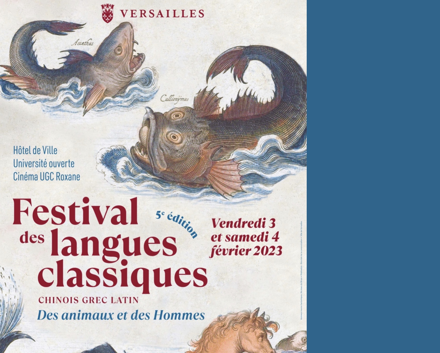 La cinquième édition du Festival des langues classiques se déroulera le vendredi 3 et le samedi 4 février 2023 à l’hôtel de ville et à l’université ouverte de Versailles