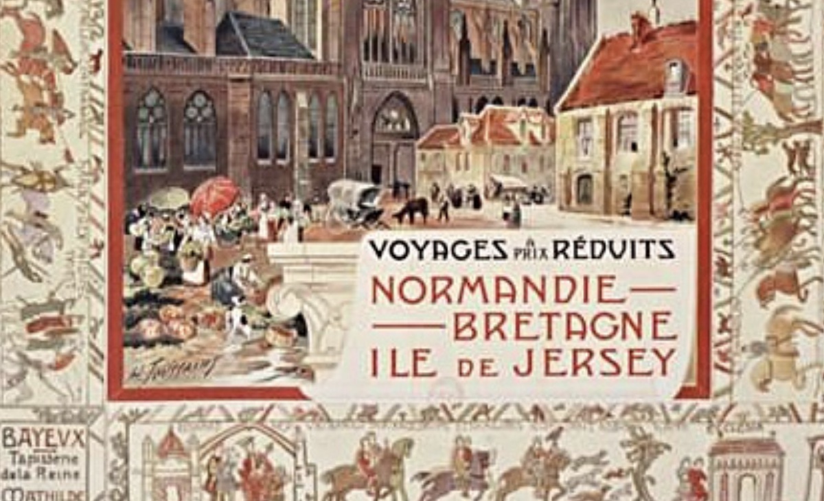 La superbe illustration de Toussaint, qui n’est pas en noir et blanc !, est visible dans son entier sur wikipedia… en ce temps lointain les « chemins de fer » ne faisaient pas l’apologie de la diversité inclusive, mais de la variété et de la richesse des provinces