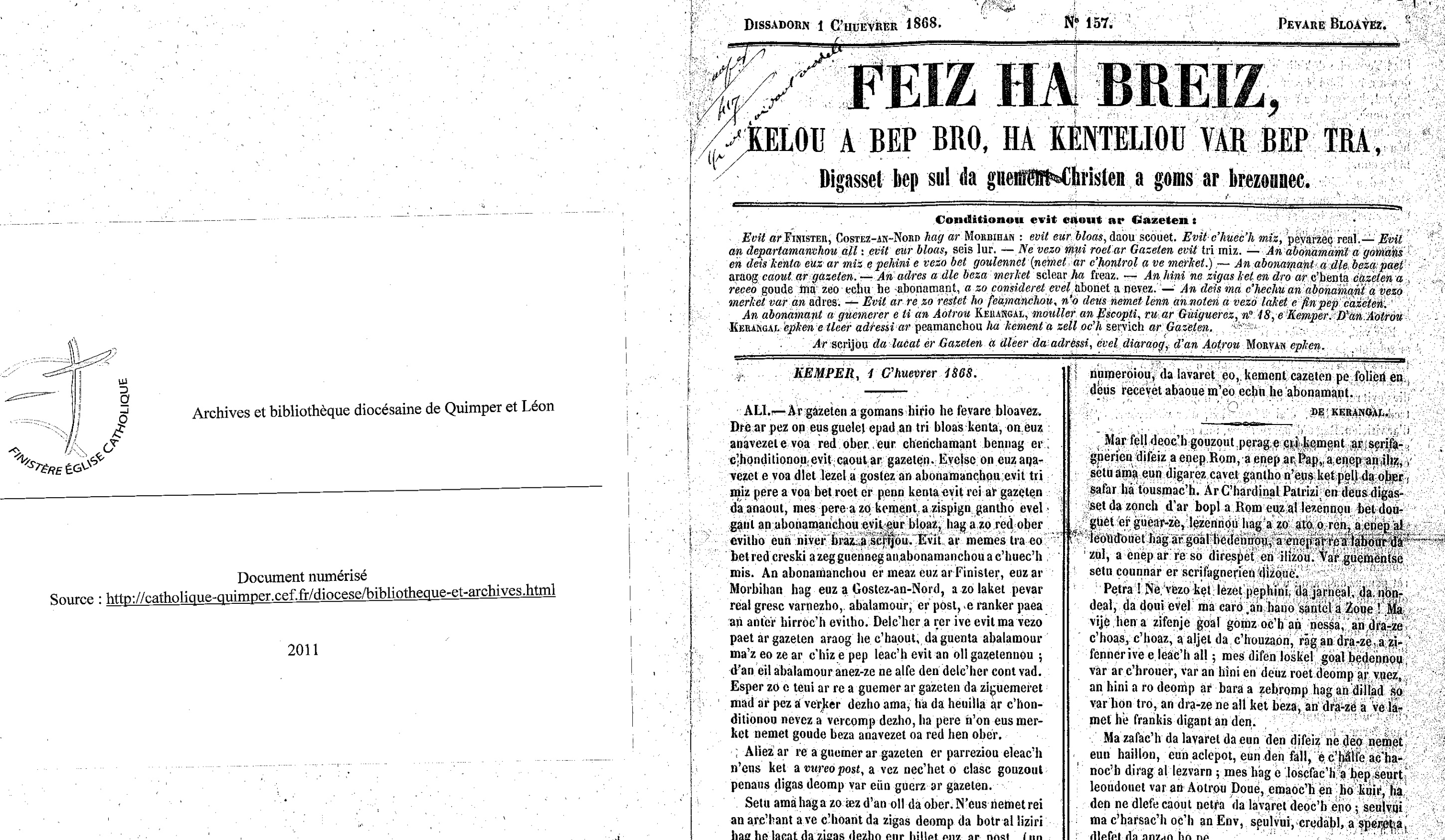 Le diocèse de Quimper et Léon met à disposition une grande partie des exemplaires du journal Feiz Ha Breiz en version numérique.