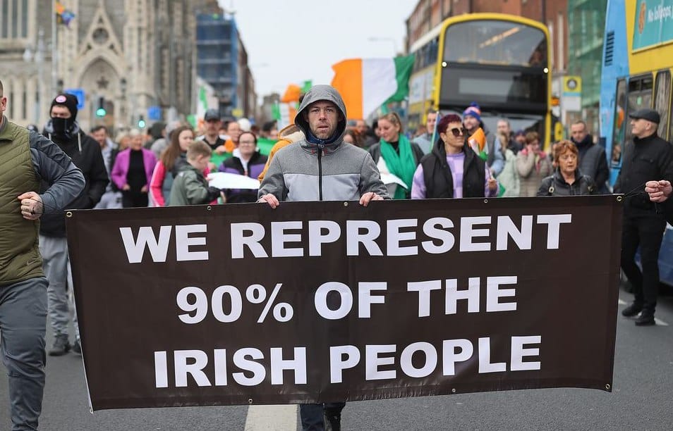 Le point central des protestations est le East Wall de Dublin, où, en novembre, après que le gouvernement a transformé un bâtiment d’État en résidence pour migrants sans consulter les habitants, des centaines de personnes ont commencé à se rassembler semaine après semaine. En décembre, les manifestations se sont étendues à d’autres quartiers – Drimnagh, Finglas, Ballymun et Fermoy. Au lieu de s’essouffler au fil des mois, les protestations ont continué à s’intensifier, se répandant dans tout le pays.