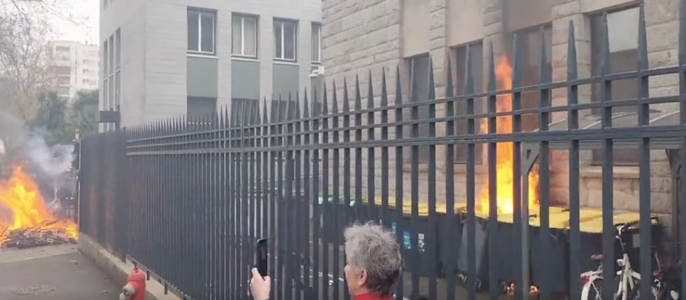 🚨🇫🇷EN DIRECT – La situation est tendue devant la sous-préfecture de #Lorient où un grand feu est allumé. pic.twitter.com/v41mpIhUJo