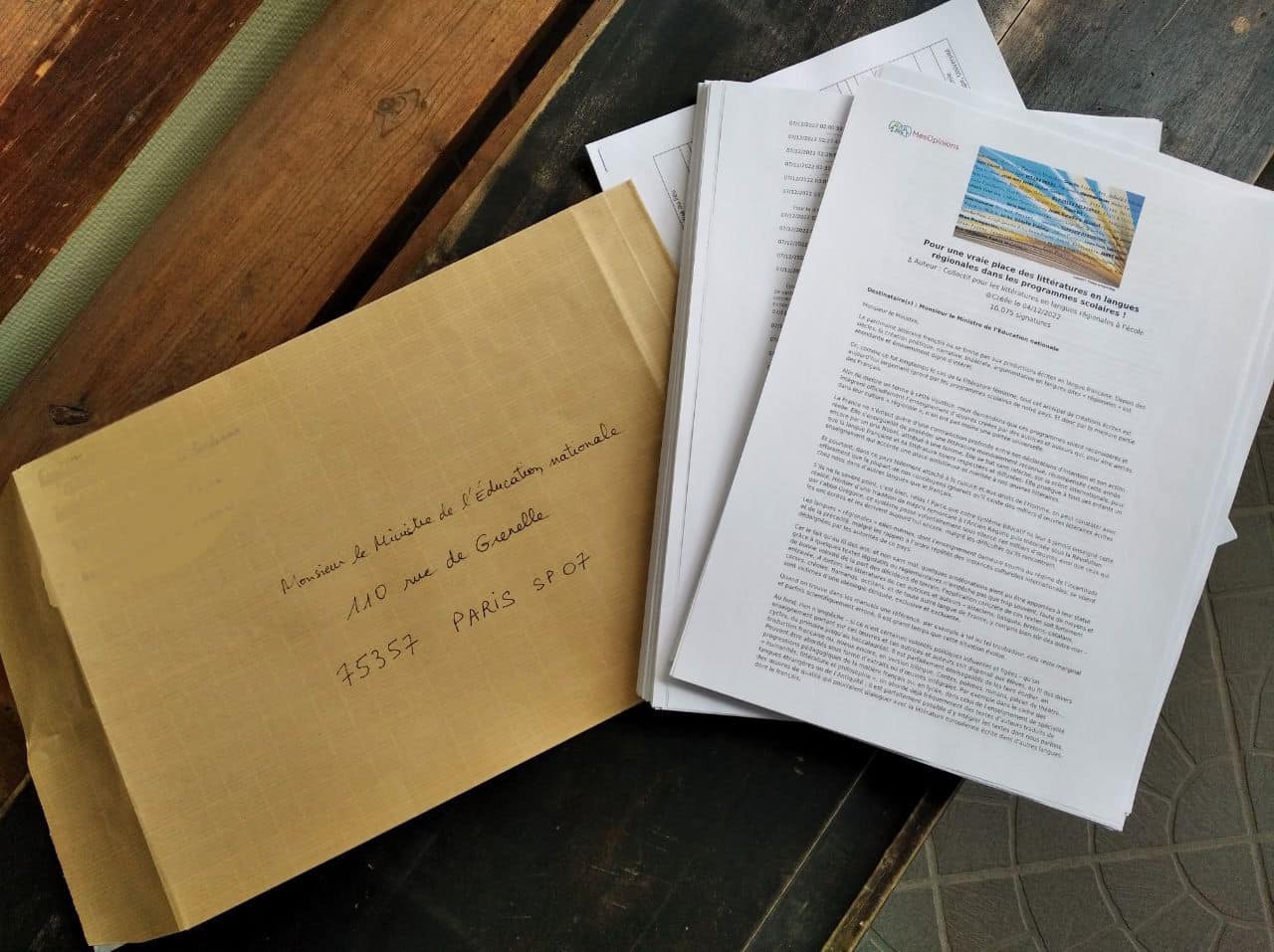 Ar petision « evit ma vefe studiet al lennegezhioù e yezhoù rannvro » kaset d’ar minister
