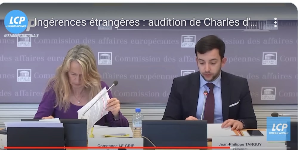 Une commission d’enquête parlementaire intitulée « Commission d’enquête relative aux ingérences politiques, économiques et financières de puissances étrangères – États, organisations, entreprises, groupes d’intérêts, personnes privées – visant à influencer ou corrompre des relais d’opinion, des dirigeants ou des partis politiques français ». Elle est présidée par Jean-Philippe Tanguy (RN). Constance Le Grip (Renaissance) en est la rapporteure.