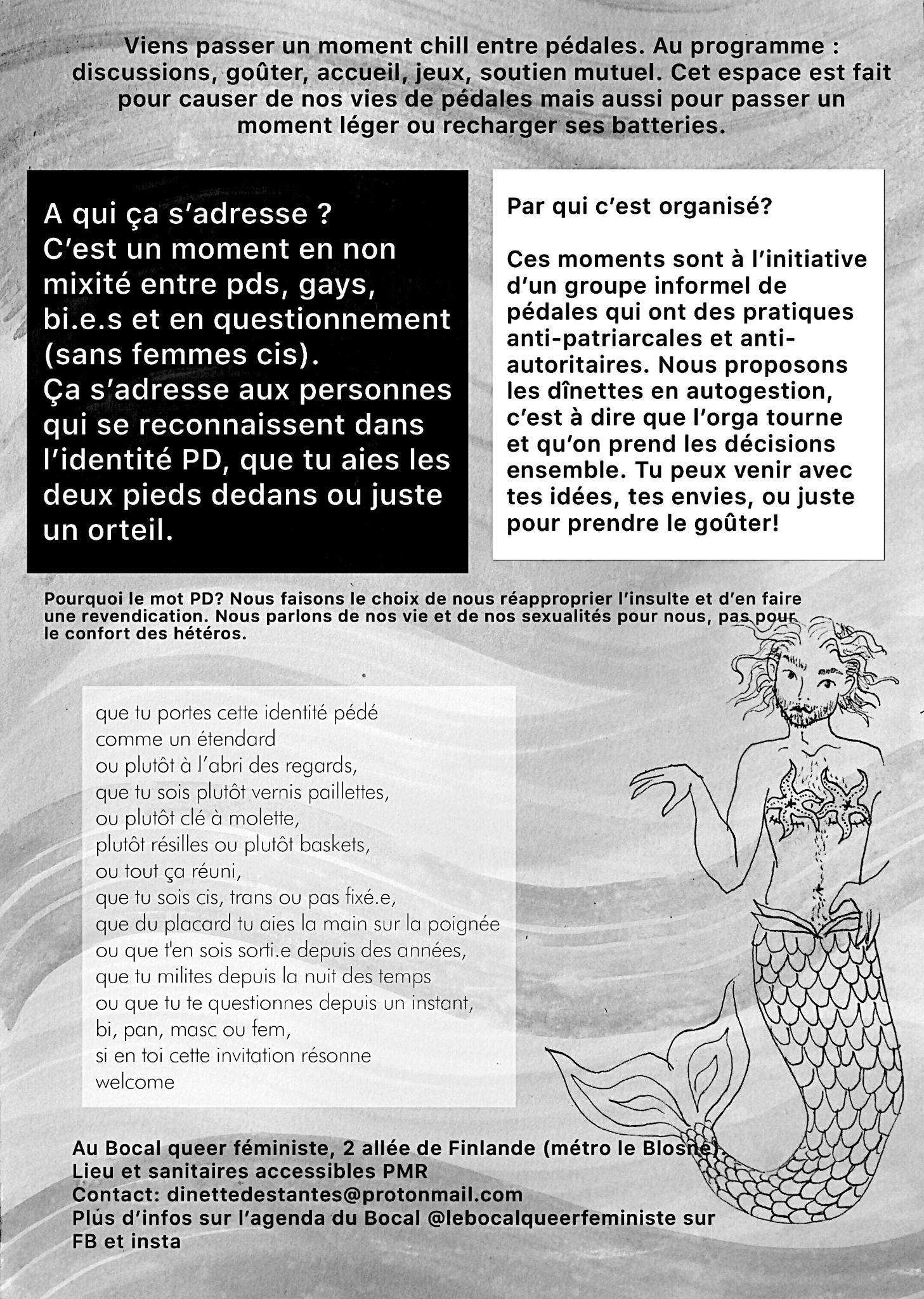 Ces messieurs-dames (nous n’osons prendre parti) veulent donc se retrouver entre elles au Bocal, ce local queer féministe à Rennes installé près du Blosne, pour « causer de leur vie de pédales ». Rendez-vous les deuxième dimanche de chaque mois !