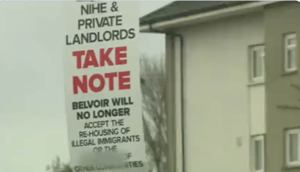 <blockquote class= »twitter-tweet »><p lang= »en » dir= »ltr »>Signs opposing the housing of immigrants in a south Belfast housing estate are being treated as a "hate incident" by the PSNI. Placards and banners have been erected in the Belvoir estate. <a href= »https://t.co/WHBJtb9GmP »>pic.twitter.com/WHBJtb9GmP</a></p>— BBC Newsline (@bbcnewsline) <a href= »https://twitter.com/bbcnewsline/status/1719804366167662665?ref_src=twsrc%5Etfw »>November 1, 2023</a></blockquote> <script async src= »https://platform.twitter.com/widgets.js » charset= »utf-8″></script>