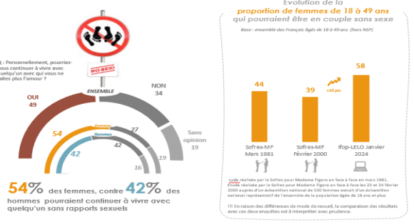 5 – La perspective de vivre une union platonique rencontre d’ailleurs un écho croissant, notamment chez les femmes qui sont de moins en moins gênées à l’idée d’une vie de couple sans sexe