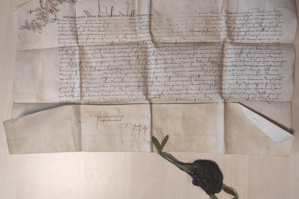 Ce parchemin unique est conservé depuis plus de 500 ans par la famille d’un particulier du pays de Dinan. C’est la première fois qu’il est exposé au public.