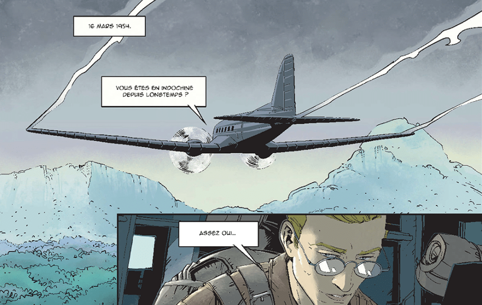 Le scénariste Jean-François Vivier avait déjà scénarisé des bandes dessinées sur Hélie de Saint Marc et sur les œuvres de Roger Frison-Roche (Premier de cordée, La grande crevasse, Retour à la montagne, La piste oubliée et La montagne aux écritures). Il commence habilement par retracer le contexte historique. Puis il décrit la célèbre bataille de Diên Biên Phu, entamée le 13 mars 1954, qui dura 56 jours, en expliquant l’importance de la perte des diverses bases françaises aux prénoms féminins (Béatrice, Eliane, Dominique…). Le scénariste nous immerge au sein des troupes, grâce à deux bretons fictifs, Patrick et Pierrick. Mais ceux-ci sont insuffisamment incarnés. Il met néanmoins en avant le courage des troupes françaises. Il ne manque pas de rappeler que plusieurs milliers de prisonniers périrent dans les camps d’internement vietminh. Sur plus de 12.000 soldats sont faits prisonniers, près de trois quarts ne reviendront pas… Cette défaite aboutit aux accords de Genève, en juillet 1954. L’Indochine est divisée en plusieurs pays : le Laos, le Cambodge et le Vietnam, lui-même séparé en deux états, l’un au sud et l’autre au nord, dominé par un régime communiste…
