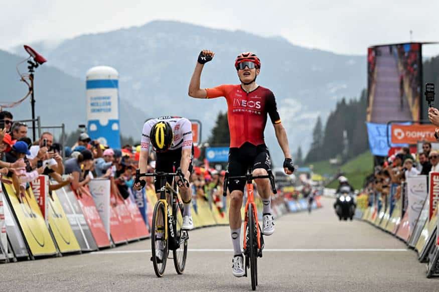 Sur son accélération, l’Espagnol a décroché le leader slovène et a surtout emmené dans son sillage Matteo Jorgenson, le plus dangereux de ses rivaux, qui est passé tout près de l’exploit. La deuxième place de l’Américain sur l’étape du jour lui a permis de se rapprocher à 8’’ au général, mais sur ce haut-lieu de la Résistance, Primoz Roglic a sauvé son maillot jaune et bleu in-extremis. Le podium final est complété pour la première fois par un coureur canadien, Derek Gee, qui a impressionné pour défendre sa 3e place, à 36’’. Le maillot à pois est quant à lui remporté à l’occasion de cette dernière étape par l’Italien Lorenzo Fortunato, qui succède à son compatriote Giulio Ciccone au palmarès.