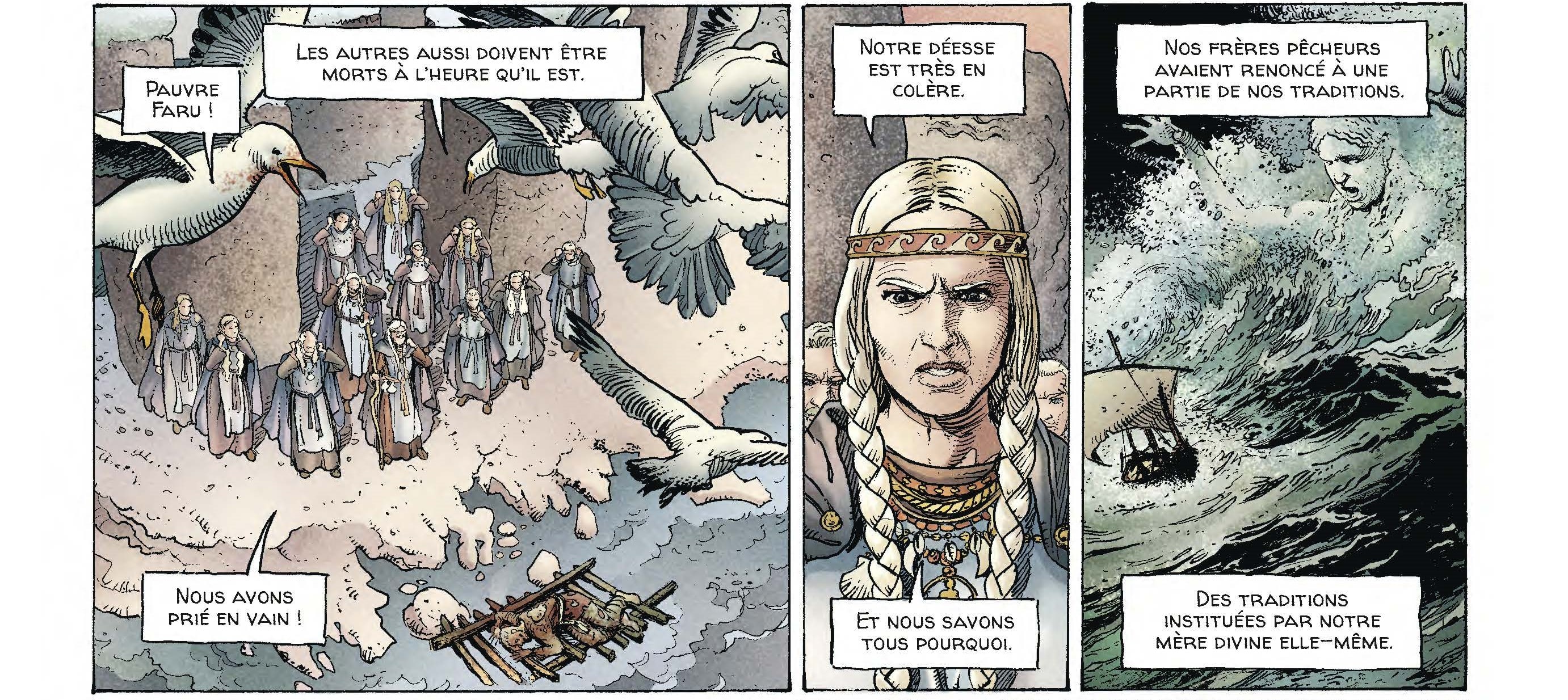 Décidé à rejoindre la mystérieuse Atlantide, Alix se rend dans un village d’Armorique pour commander la construction d’un navire capable d’affronter les dangers de la Mer du Nord.