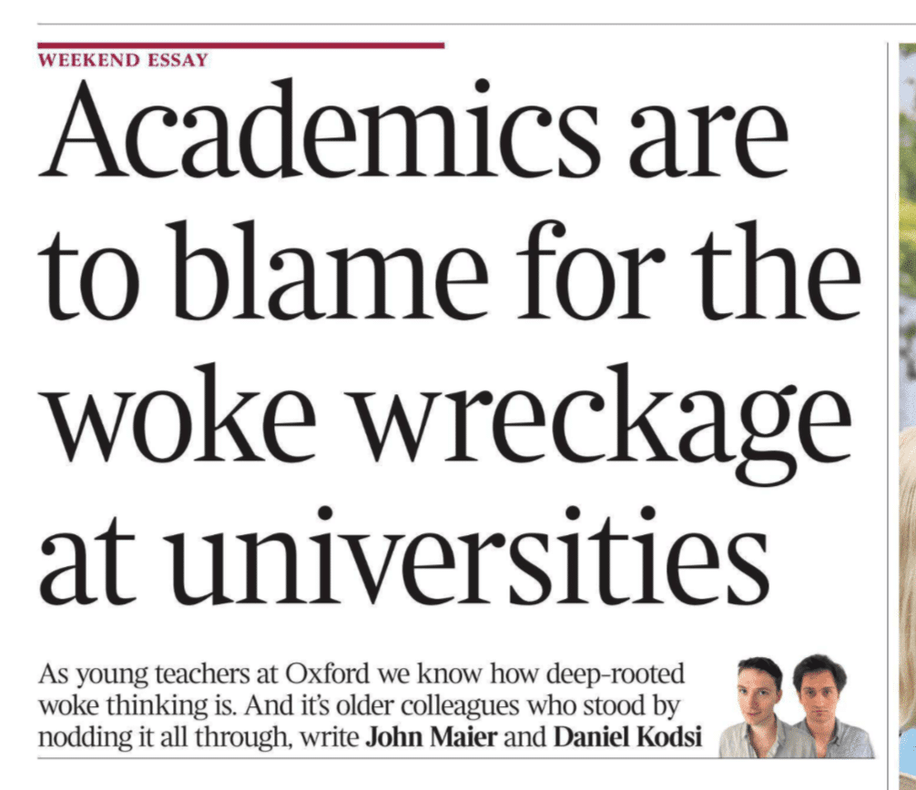 Samedi, feuilletant The Times au bar de l’Océan, je tombai sur un article d’une rare vigueur, signé par deux jeunes enseignants d’Oxford, John Maier et Daniel Kodsi. Le titre annonce la couleur : «Academics are to blame for the woke wreckage at universities». Les universitaires sont responsables de la ruine woke des universités. Voilà qui mérite d’être lu, surtout lorsque les auteurs ne parlent pas de l’extérieur, mais depuis « le ventre de la bête », dix ans passés à Oxford, d’abord comme étudiants, puis comme doctorants et enseignants.
