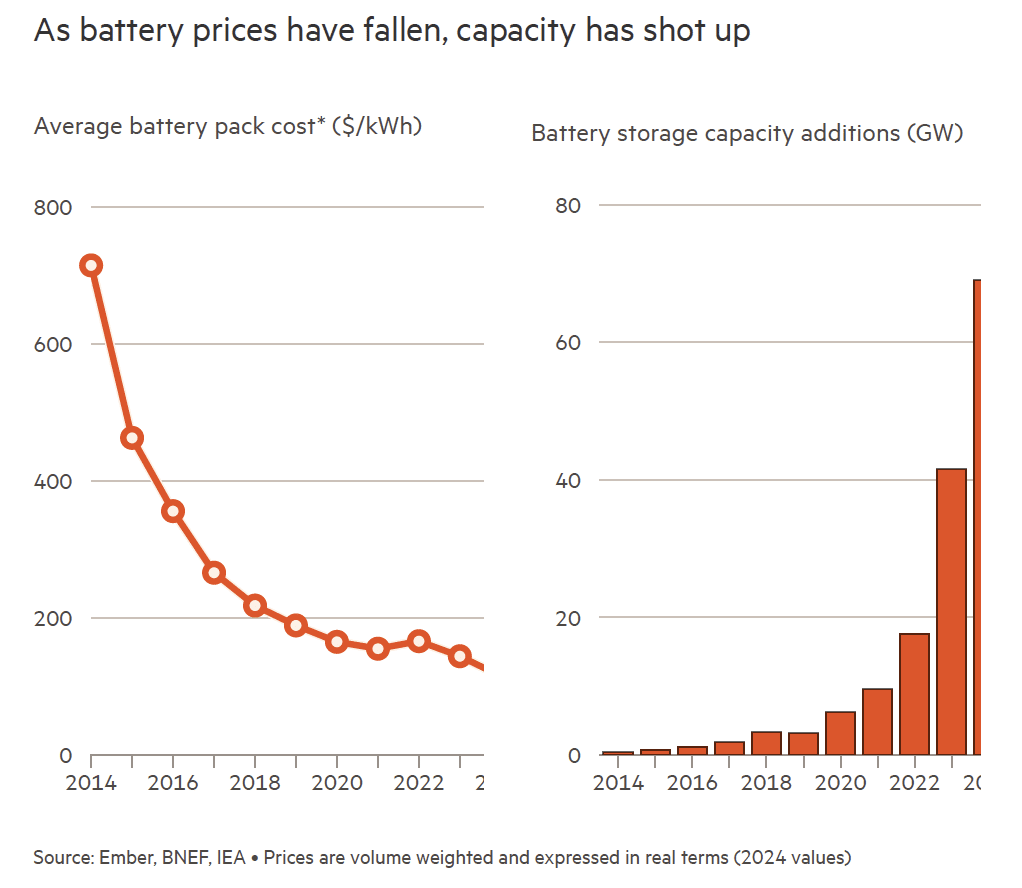 Le vent soufflait dru ce matin-là sur la pointe de Léchiagat, et les goélands se laissaient porter comme des cerfs-volants ivres au-dessus du port. De retour de ma promenade sur la longue digue qui protège le port, au café des Brisants, entre deux gorgées de café long, je découvrais dans le Financial Times un article qui, à mon sens, marquera l’histoire industrielle du siècle : “How mega batteries are unlocking an energy revolution”, signé de Nassos Stylianou, Sam Learner, Irene de la Torre Arenas et Sam Joiner.