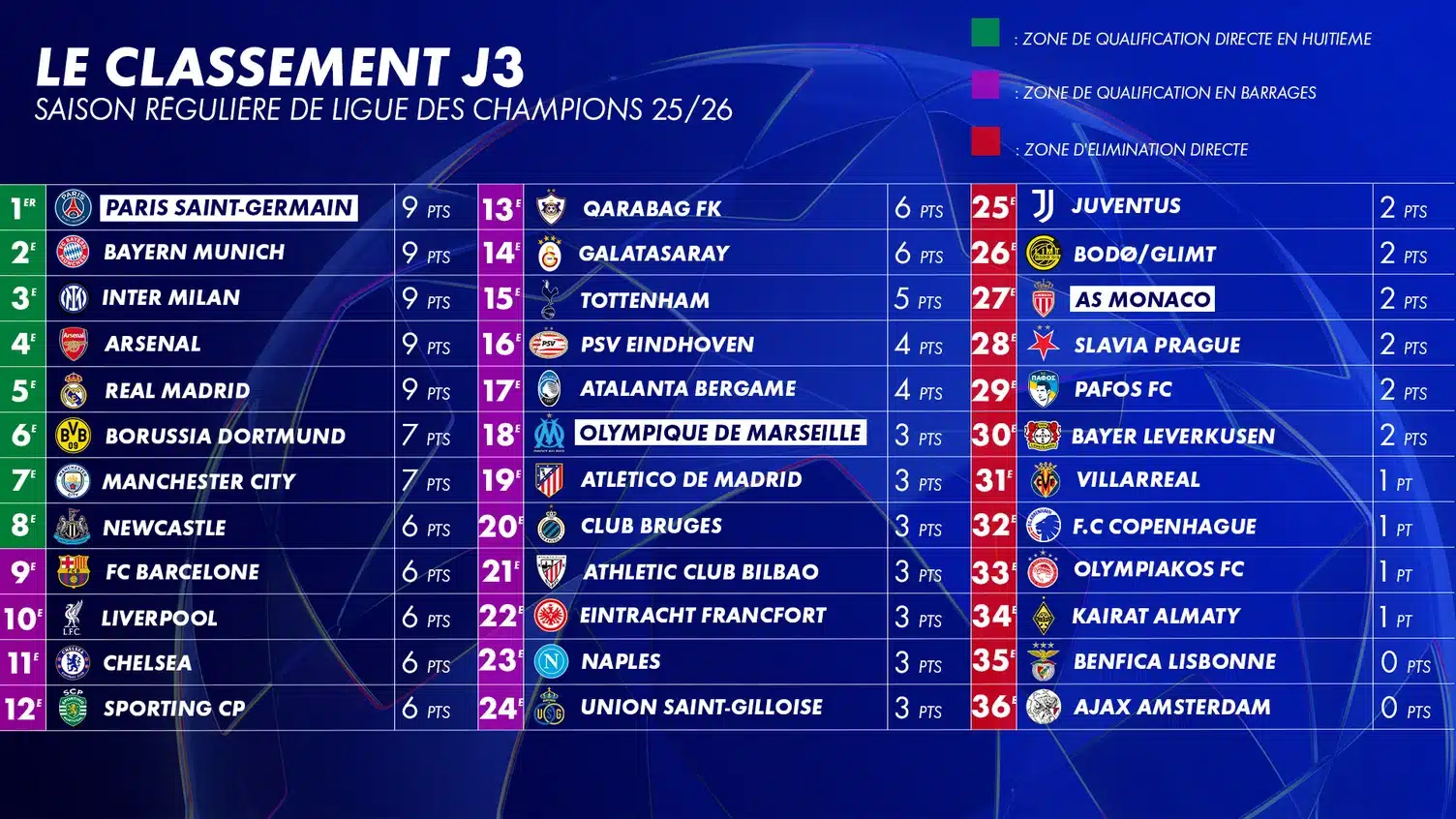 Cette 3e journée a mis en lumière une Ligue des champions plus spectaculaire que jamais, où la densité du calendrier ne freine pas le spectacle. Le PSG, Bayern, Arsenal, Liverpool et City comptent désormais trois victoires en trois rencontres, tandis que Napoli (0 point) et Leverkusen (1 point) sont déjà au bord du gouffre.