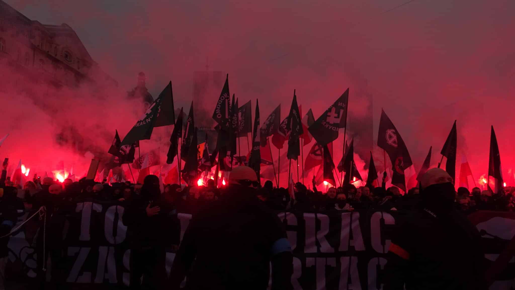 Parti du rond-point Roman Dmowski – du nom du père du nationalisme polonais moderne – le cortège s’est étendu sur plusieurs kilomètres en direction du Stade national, dans une mer de drapeaux rouges et blancs, de torches et de chants patriotiques.