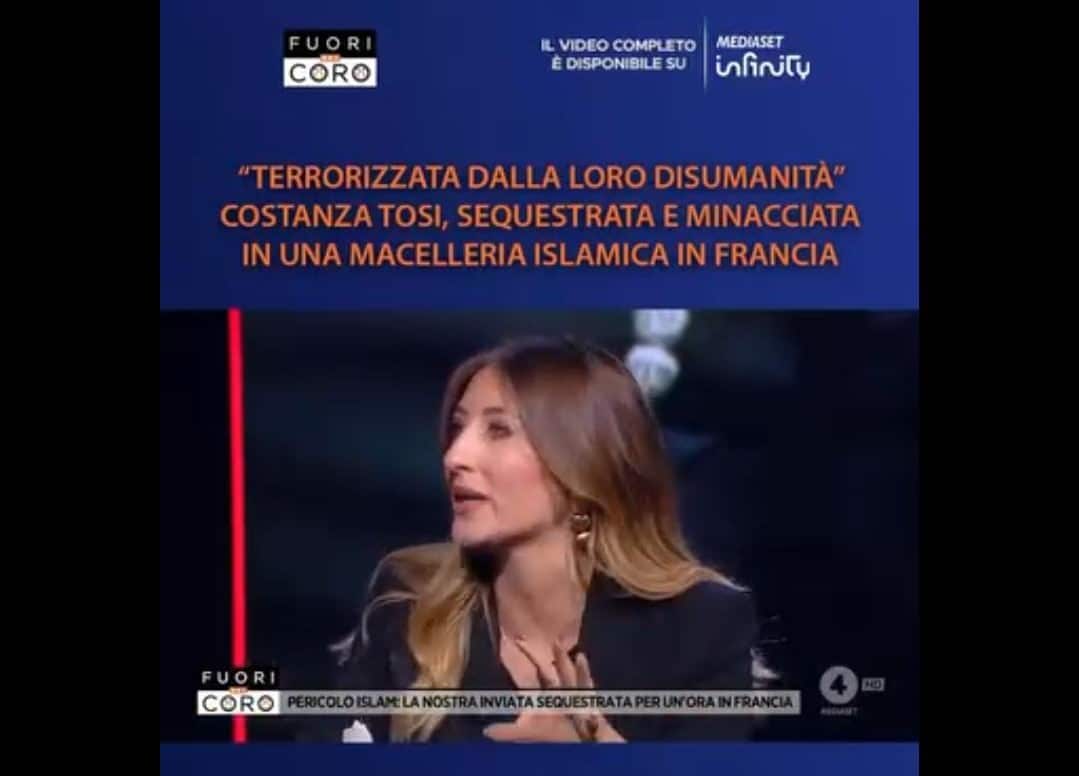 La journaliste Costanza Tosi, envoyée spéciale du programme d’actualité politique « Fuori dal Coro » se trouvait à Roubaix pour réaliser un reportage sur la radicalisation islamique dans cette ville à forte densité musulmane. Entrée dans une boucherie halal pour poser des questions aux propriétaires, la situation a rapidement dégénéré, jusqu’à ce que la femme soit retenue de force et menacée physiquement pendant plus d’une heure par les propriétaires du commerce qui l’accusaient d’avoir filmé le magasin sans leur permission. Sous les rires et les insultes, ils lui ont arraché le téléphone portable des mains, et l’ont empêchée de sortir du magasin, exigeant le code d’accès à l’appareil pour effacer ce qu’elle avait filmé.