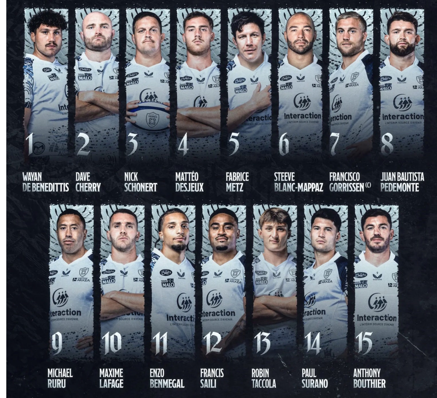 Dans la cage, Mattéo Desjeux, tout juste prolongé jusqu’en 2029, formera la paire avec Fabrice Metz, tandis qu’en troisième ligne, le staff aligne du costaud : Blanc-Mappaz, Gorrissen (capitaine) et Pedemonte, repositionné en numéro 8 pour apporter sa puissance.