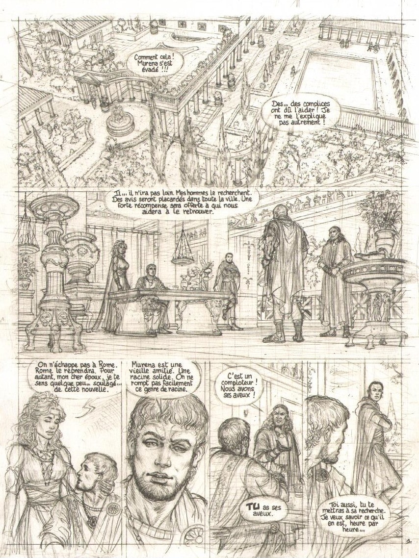 Après le décès de Philippe Delaby, c’est Theo Caneschi, jusqu’ici connu pour la série médiévale Le Trône d’Argile, qui avait repris le dessin de Murena, avec un style plus baroque.