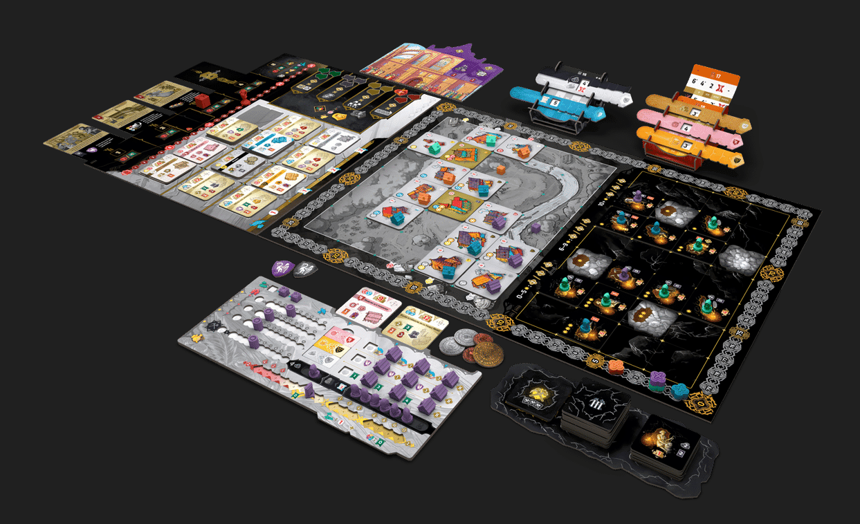 Deuxième raison du succès : le matériel de jeu est magnifique. Il n’y a pas un mais plusieurs plateaux : un pour la ville de Kutna Hora, un pour les mines d’argent, un pour les bâtiments disponibles, ainsi qu’un autre pour la cathédrale. On apprécie également les réglettes trouées qui indiquent le prix de chaque ressource du jeu en fonction de l’offre et de la demande.
