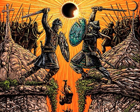 Rafael Jimenez prend délibérément parti pour le camp des chrétiens. Il construit un récit historique en montrant l’enjeu stratégique. Il révèle que les chefs des deux camps cherchent à transformer ce combat en un choc des civilisations et, à cette fin, demandent aux meilleurs scribes de faire l’éloge de leur victoire.